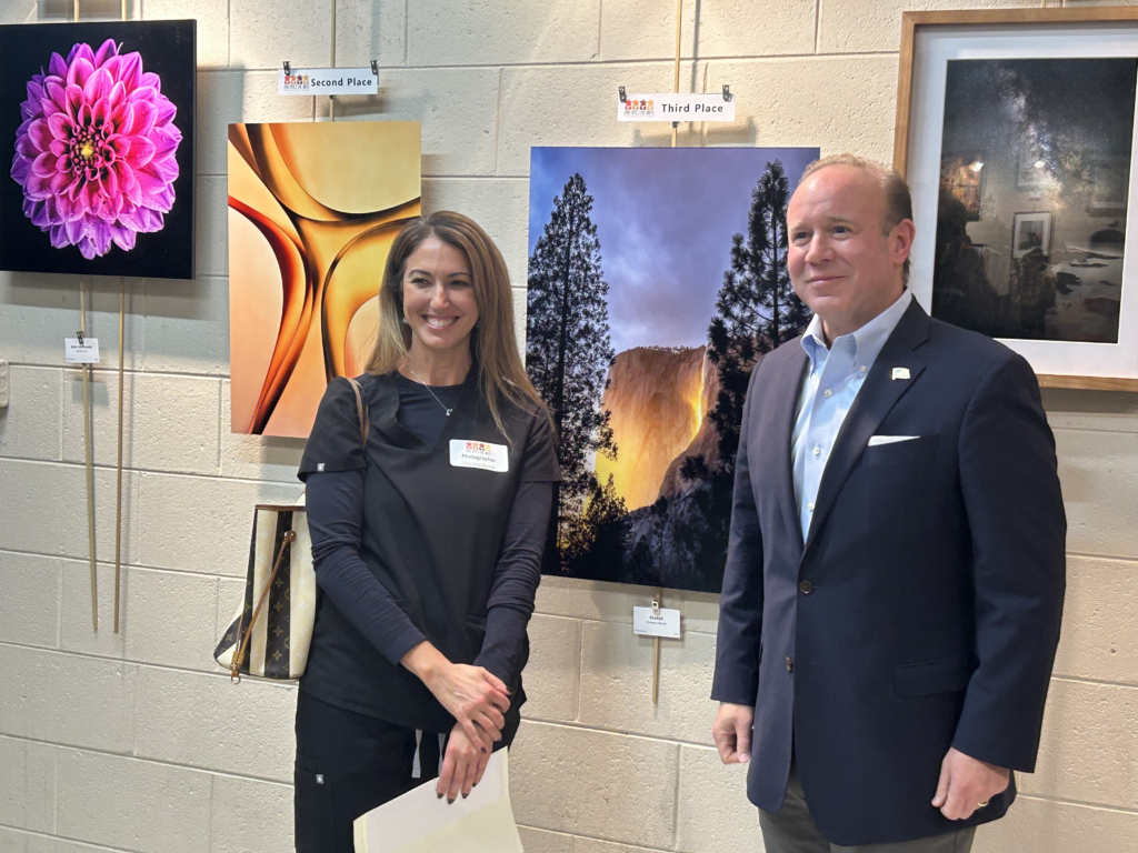 Winner Christine Bondi’s photo, “Firefall,” displayed the natural phenomenon of the Yosemite Firefall two weeks of the year. She accepted her award from Mayor Dave Fleisher at the Fall Into the Arts juried art show.