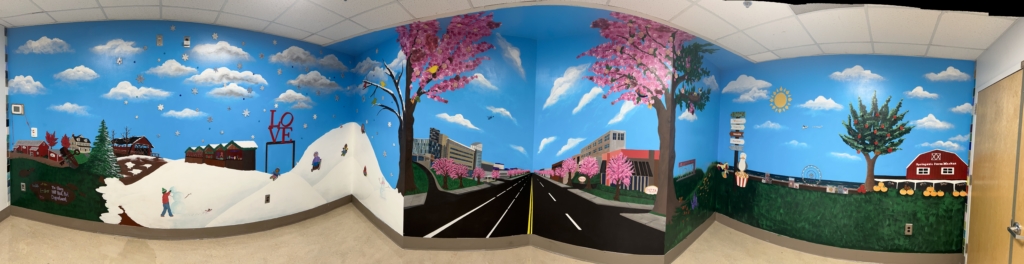 A panorama of the mural on Jefferson Cherry Hill Hospital’s third floor.