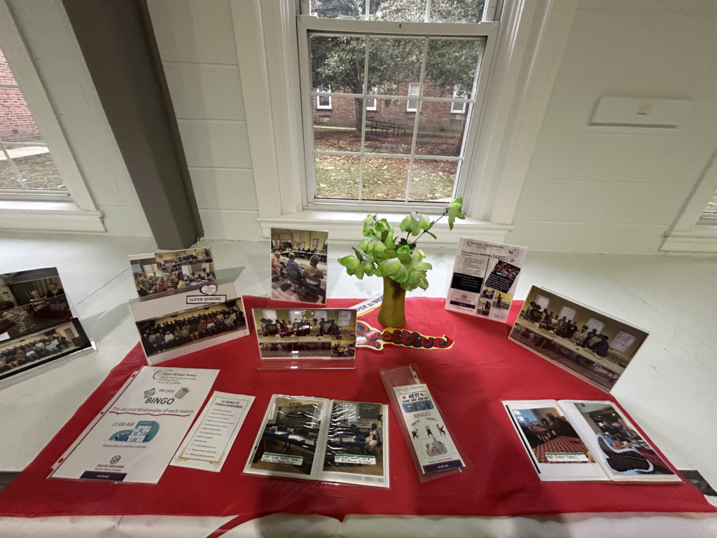 Pat Kenny, president of the Super Seniors, set up a display at the Coffee and Connection event showcasing its activities.