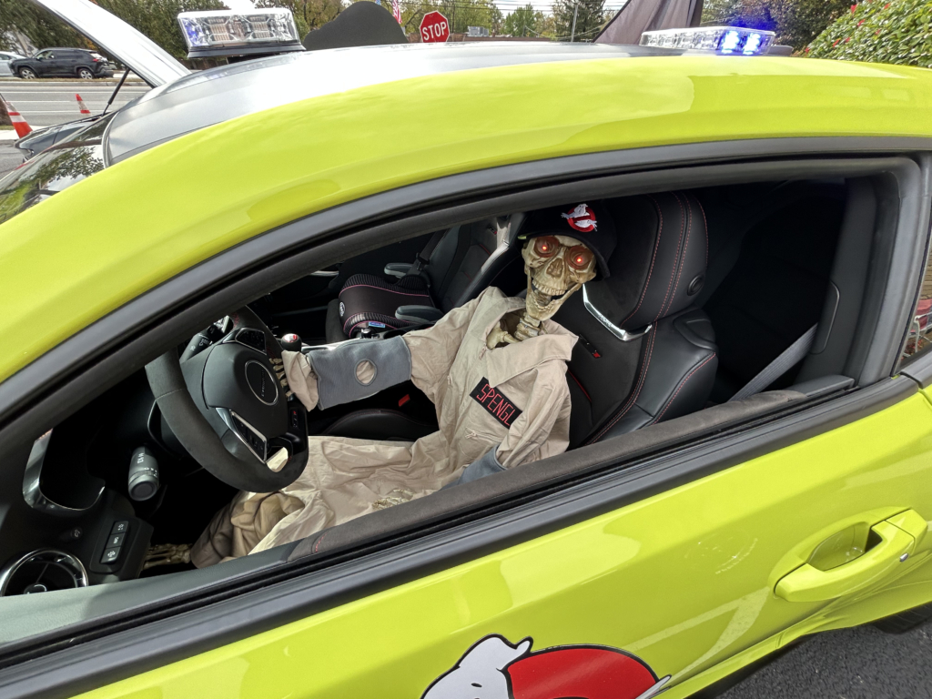 One of the cars on display at the dual event featured a “Ghostbusters” theme, with a skeleton behind the wheel in one of the uniforms that was featured in the film.