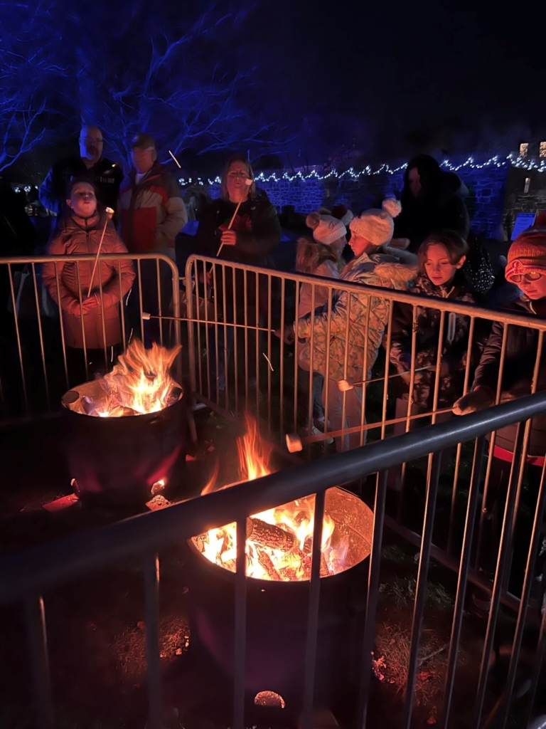 Children roast marshmallows over a bonfire during last year’s Winter Fest.