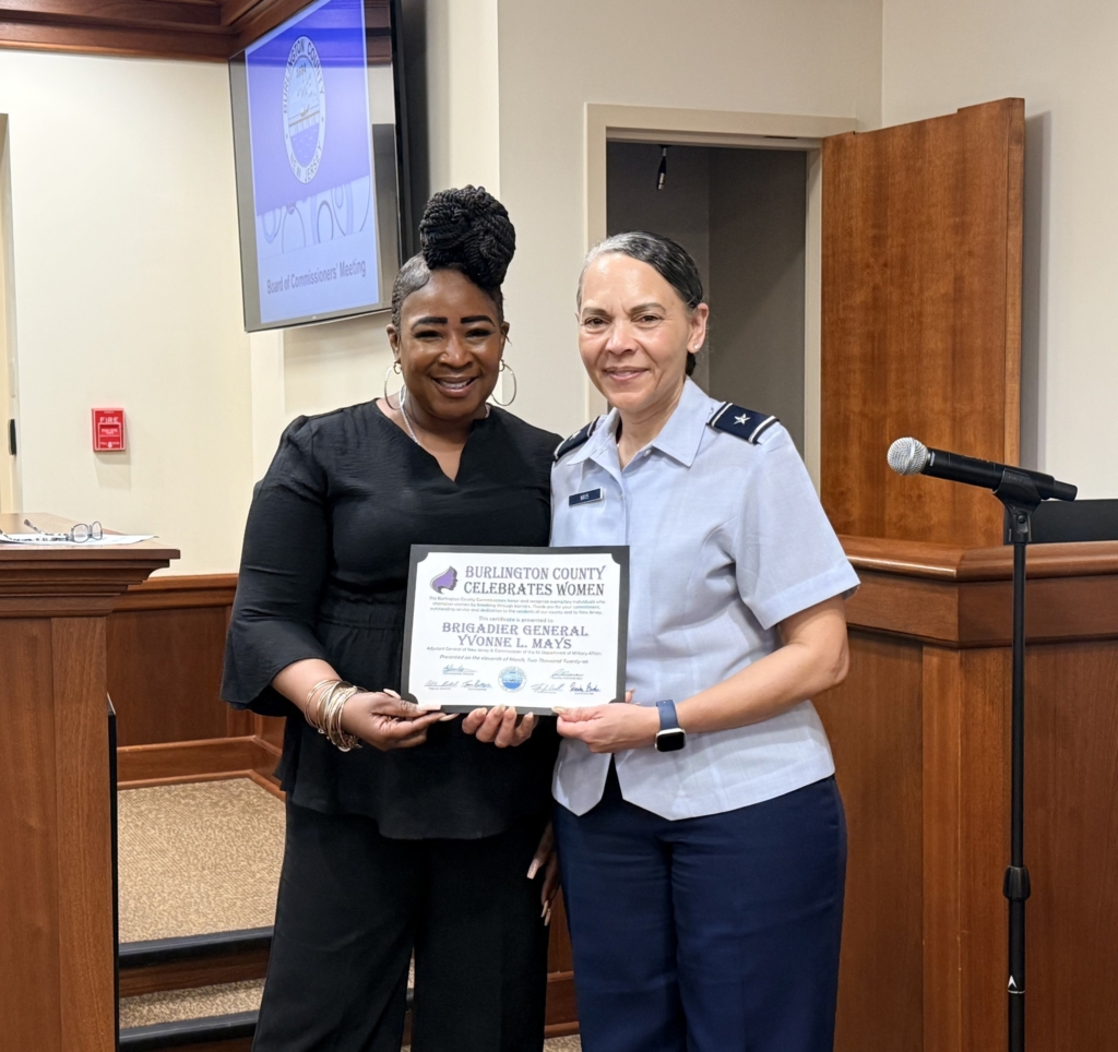 The Burlington County Commissioners celebrated Women’s History Month at their March meeting by honoring one of the state’s inspiring women leaders, Brigadier Gen. Yvonne L. Mays.