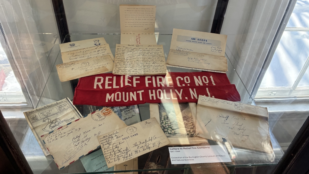Among the items displayed in the 250 Years of Burlington County History exhibit are overseas letters from American service members during World War II to Mount Holly’s Relief Fire Company.