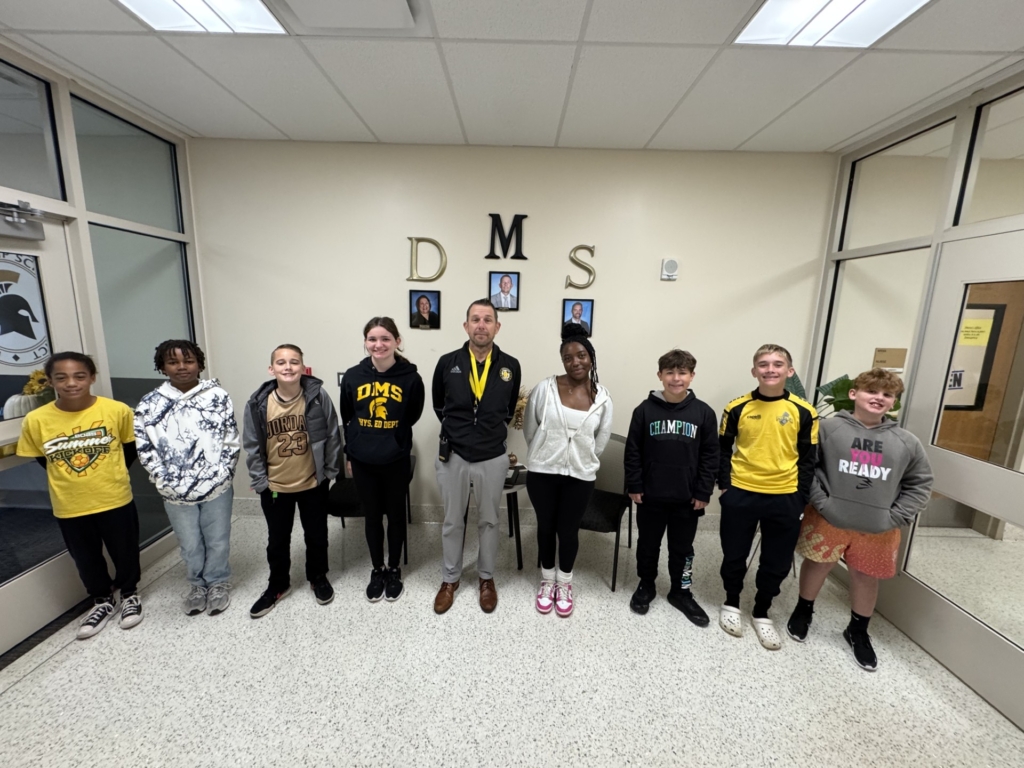 Deptford Middle School named its inaugural group of Spartan good citizens on Oct. 10. They are Mya Goree (left to right), Adrien Adams, Ethan Finger, Cali Brand, Kennedy Lindsay, Joseph Zizzamia, Luke Walker and Quintin Smith. Principal John Schilling was on hand to acknowledge the students as part of the New Jersey Department of Education’s Week of Respect that began on Oct. 6. Good Citizens are nominated by a teacher for exemplifying the values the school hopes to see in all students, including respect, kindness, school spirit and good character.