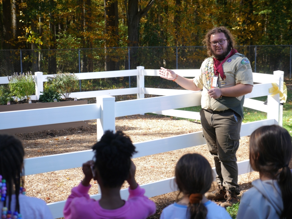 Deptford High School senior Connor Becker opened a butterfly pollinator garden to a group of students at Lake Tract Elementary School – his alma mater – on Oct. 21.