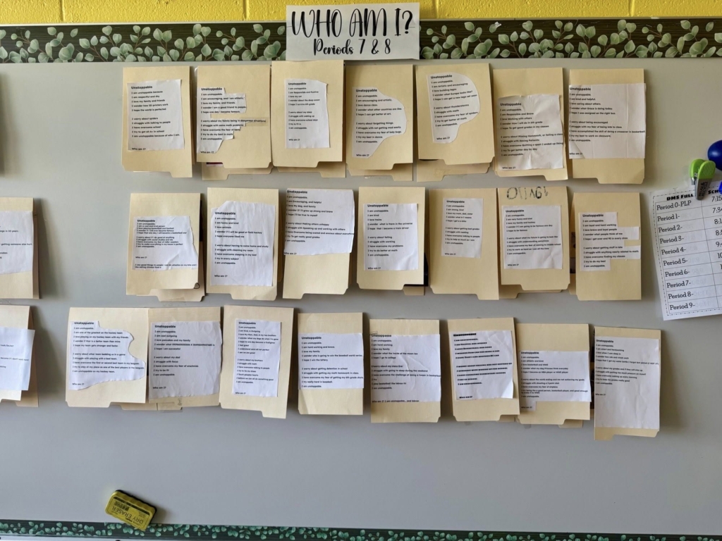 The sixth-grade ELA classes of Tamresa Betz and Heather Imhof at Deptford Middle School created “Who Am I?” projects to display for their families during back-to-school night on Sept. 17. On the front, students placed “I Am” poems they wrote, inspired by their summer reading book, “Unstoppable.” Inside, they put their names and photos of themselves. Families had to guess which poems belonged to their kids.
