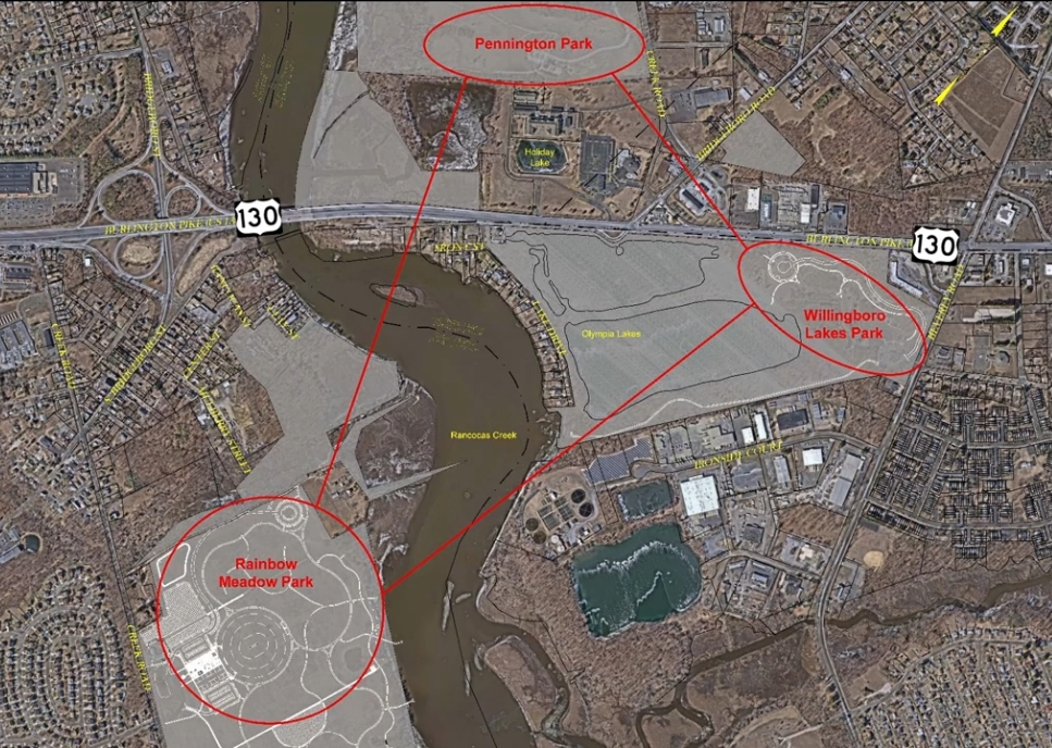 How to best connect Pennington Park, Willingboro Lakes Park and Rainbow Meadow Park (formerly Laurel Run Park)?