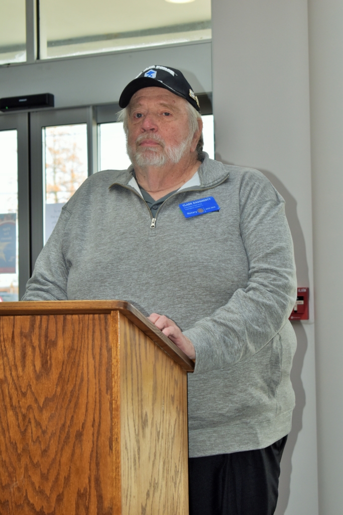 Clark Daugherty, president of the West Jersey Rotary, speaks about the sacrifices made by veterans and their families during the Flag for Heroes Veterans Day ceremony on Nov. 11.
