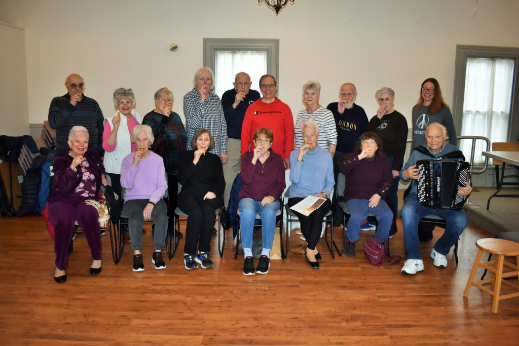Upstairs, nearly 20 people were already getting a morning workout during “Fitness with Mel,” and downstairs executive director Sheri Siegel was welcoming the talented kazoo players as they came in full of energy and excitement about performing again.