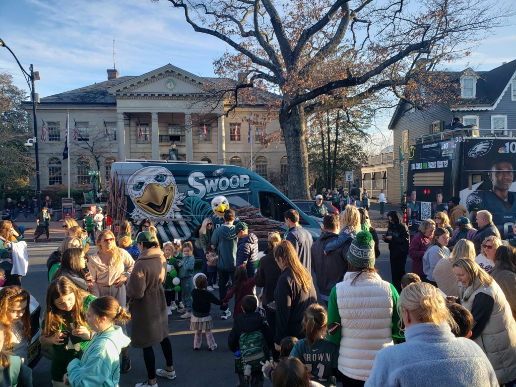 The stop in Haddonfield took place in front of Borough Hall and gave fans the opportunity to take pictures with Swoop, the teams mascot, and Eagles players in and around the tour bus, along with chances to win tickets to the playoffs.