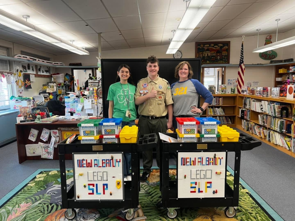 Robert “CJ” Mannon, a freshman at Burlington County Institute of Technology, created the LEGO mobile carts for students at New Albany Elementary School. The carts were part of his Eagle Scout project as a member of Scout Troop 26 in Medford.