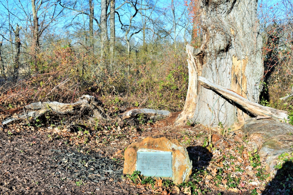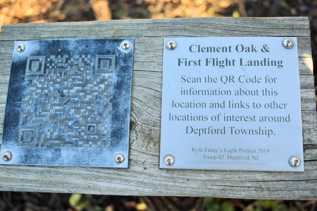 The First Flight site in Deptford also commemorates the Clement Oak tree that was more than 400 years old when destroyed by a storm five years ago. The area is overgrown with weeds and inaccessible to the public. It’s located behind a 6-foot high fence at the Clements Bridge Road Walmart, and a person would have to sneak through a hole in the fence and walk 50 yards in heavy brush to find it.