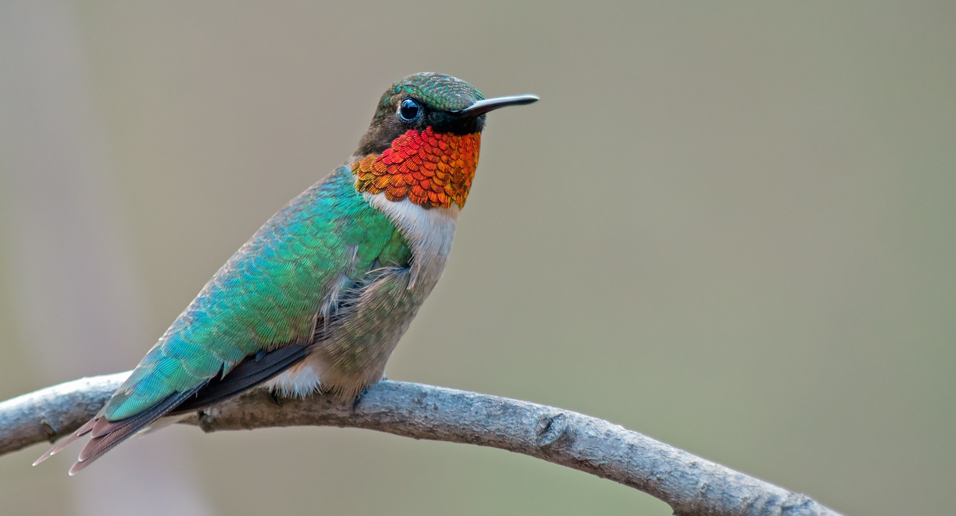 Despite a tiny stature, these fascinating creatures are vibrant and full of personality. Males and females are easy to tell apart, a trait called sexual dimorphism shared by many birds. The males shimmer with metallic green feathers and a brilliant ruby-red throat while the females sport soft white bellies with faint gray streaks.