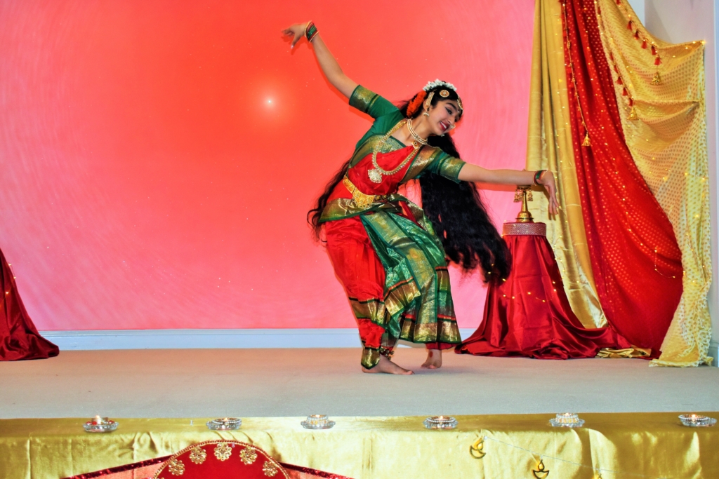 The Diwali celebration began with a special ceremony that opened with Srividya Karra performing an interpretive dance dressed in traditional Indian garb. Next came the lighting of the Diwali Diya at a small table in front of the stage.