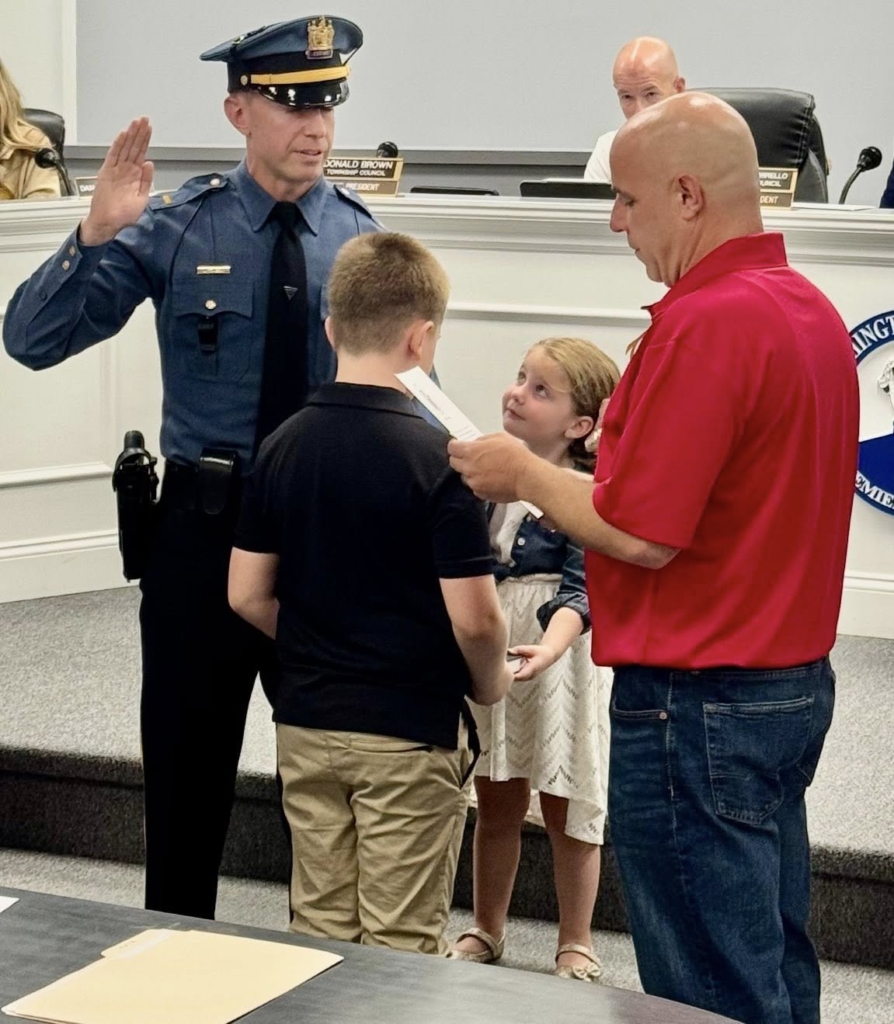 Leo DiPietro was promoted to captain, Joe Rowson to lieutenant and Matt Laudenslager to sergeant. As they stood by their families, Mayor Anthony Dellapia delivered the oaths of office at a township council meeting.