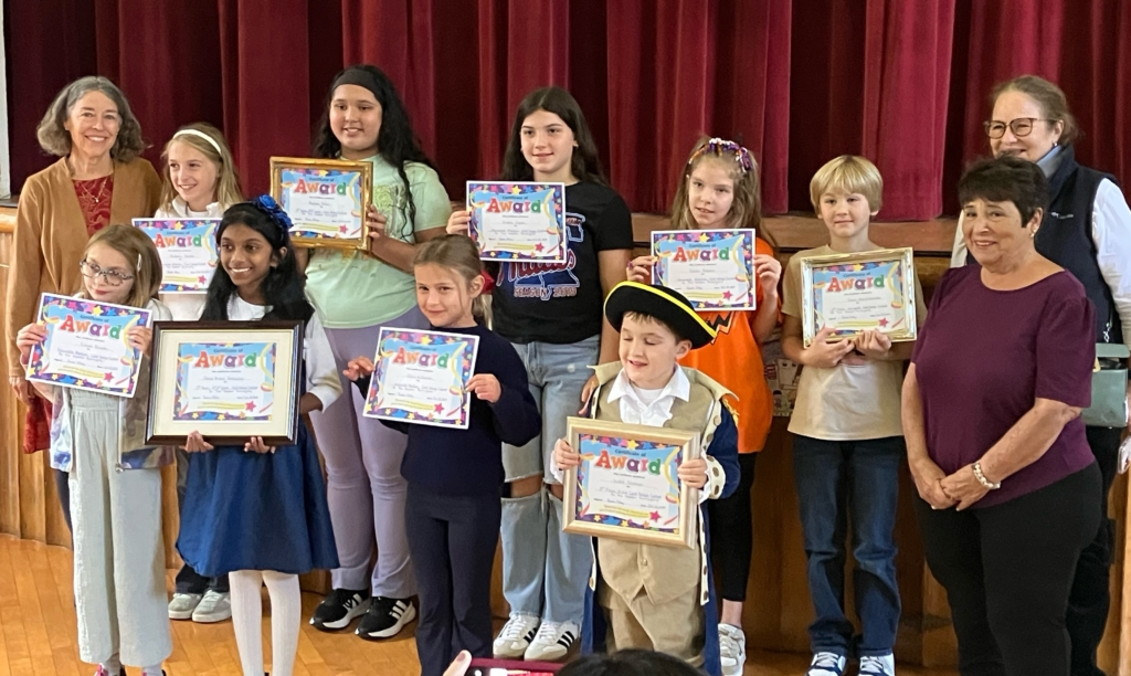 First-grader Luke Chaiken of Thomas Edison Elementary School in Westmont won for his category. His card featured the phrase “Happy 250th Birthday America,” with a large American flag across the cover and an army helmet placed atop a flag’s pole. He came to the award ceremony dressed as George Washington.