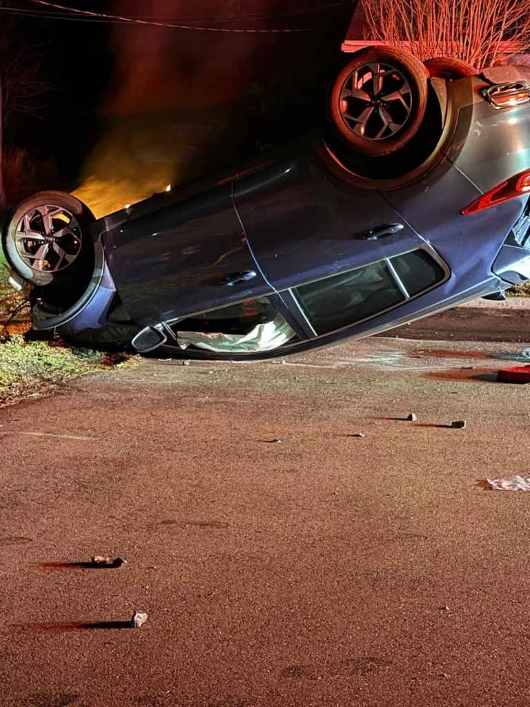 A stolen Kia overturned on West Mercer Avenue after a high-speed pursuit in the early-morning hours of April 4.