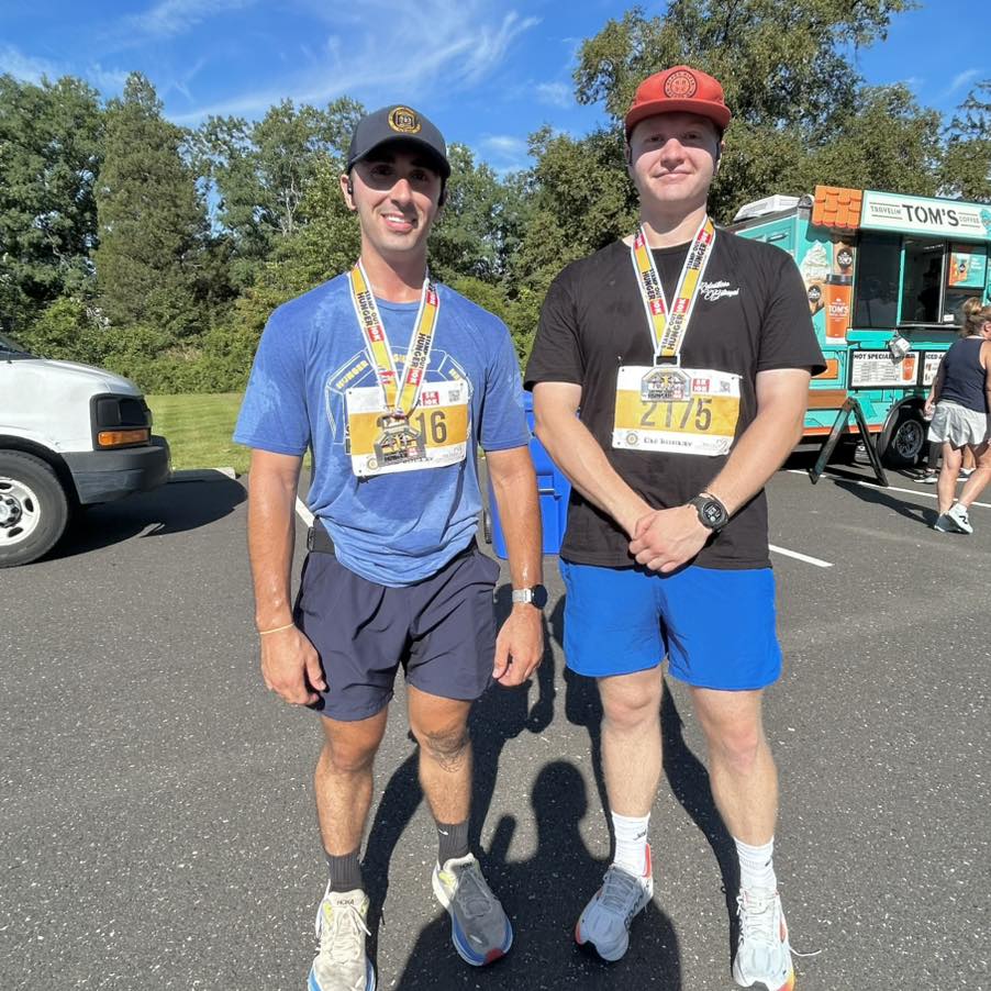 Township officers Paul Kostue and Lance Sims took part in the Stamp out Hunger 10K hosted by The Zallie Community Foundation on Sept. 1 in Medford. The run supports the Food Bank of South Jersey.