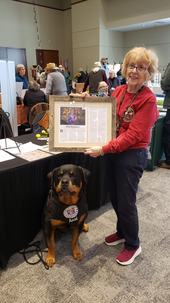 Linda Stanton poses with a framed New Jersey Monthly magazine article focused on her attendance at the 2024 Lines on the Pines event.