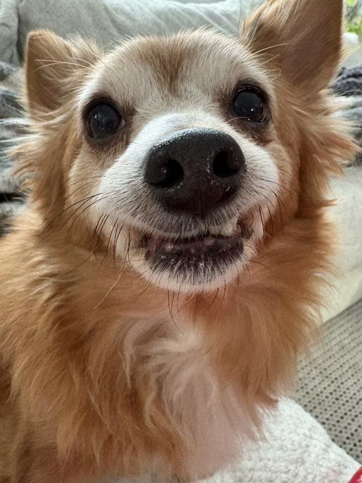 This is my goofy Chihuahua rescue, Teddy Graham. Teddy is 8 years old and originally from Camden. He loves his belly rubs, bones, and peeing on neighbors’ yards while making eye contact with them. He follows it up by kicking dirt up just to add salt to the wound.