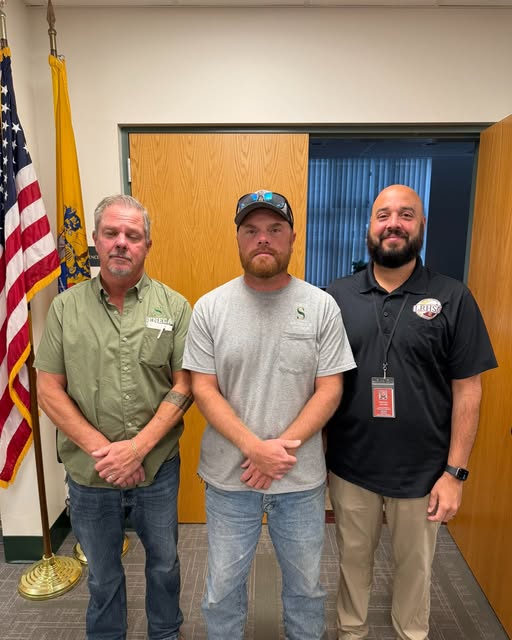 Seneca High School’s employee of the month for October is Jeff Meyers (center), from the building and grounds department. He recently acted quickly and expertly in helping a co-worker who was in a dangerous emergency situation.