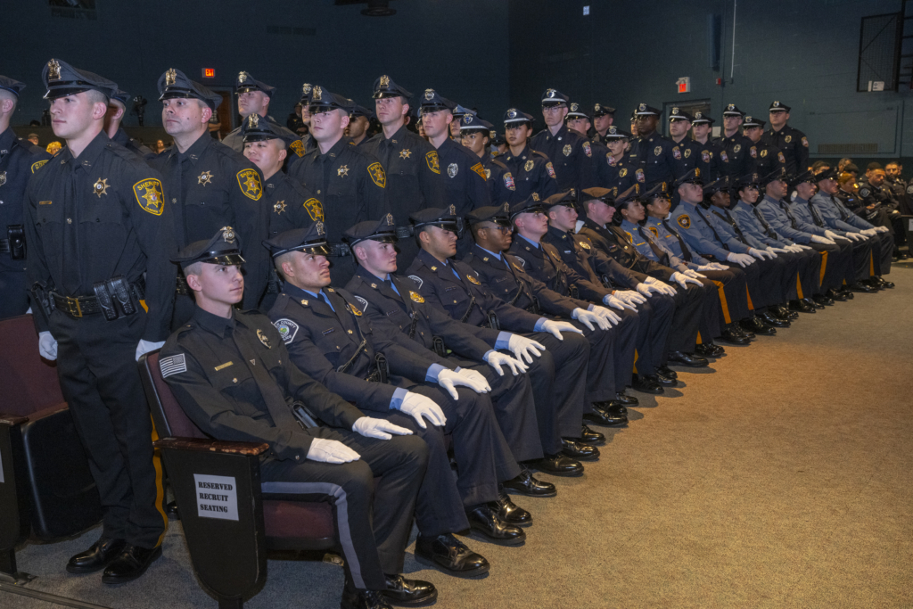 A cherished tradition of the academy was observed during the ceremony: badge-pinning. Many recruits were pinned into their new profession by a family member who is currently serving or has retired from law enforcement.