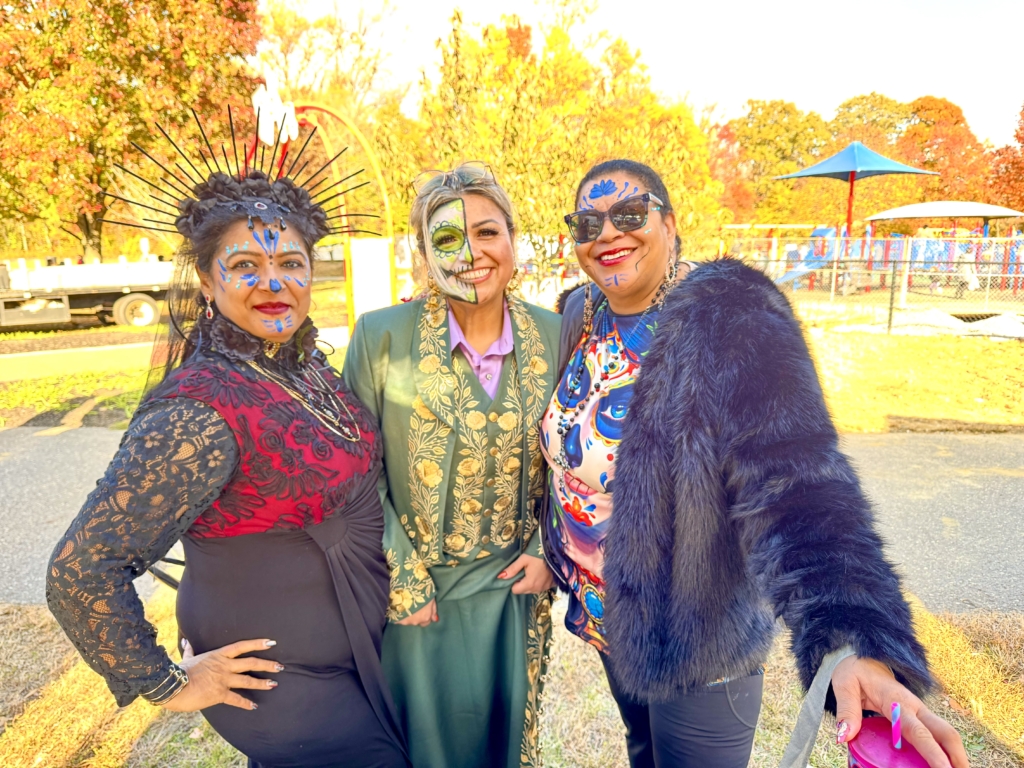 Community leaders Sapana Raval (left to right), Janette Norcross and Lisa Witherspoon were at the Día De Los Muertos event to honor Mexican traditions through music, dance and community connection.