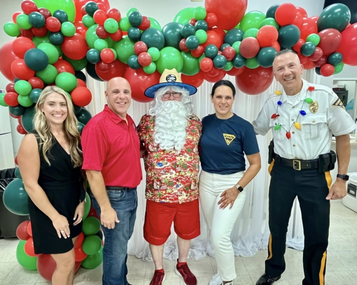 Santa joined the fun during the Washington Township Police Department's eighth annual Christmas In July senior center lunch party on July 24. From left to right, Councilwoman Dana Pasquelone, Mayor Anthony DellaPia, Santa Claus and Police Chief Pat Gurcsik.