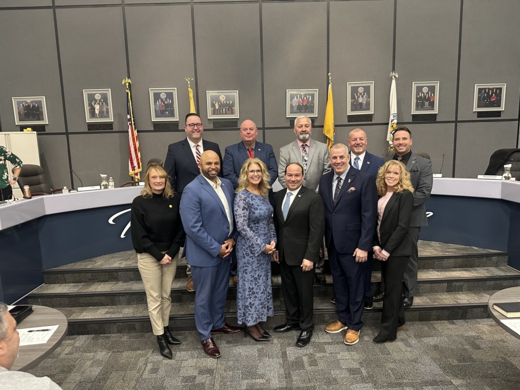 Monroe council reorganized on Jan. 6 with new leadership. Councilwoman-at-large Denise Adams (front center) was nominated and will serve as council president. Councilman-at-large Patrick O’Reilly (in blue tie) will be vice president.