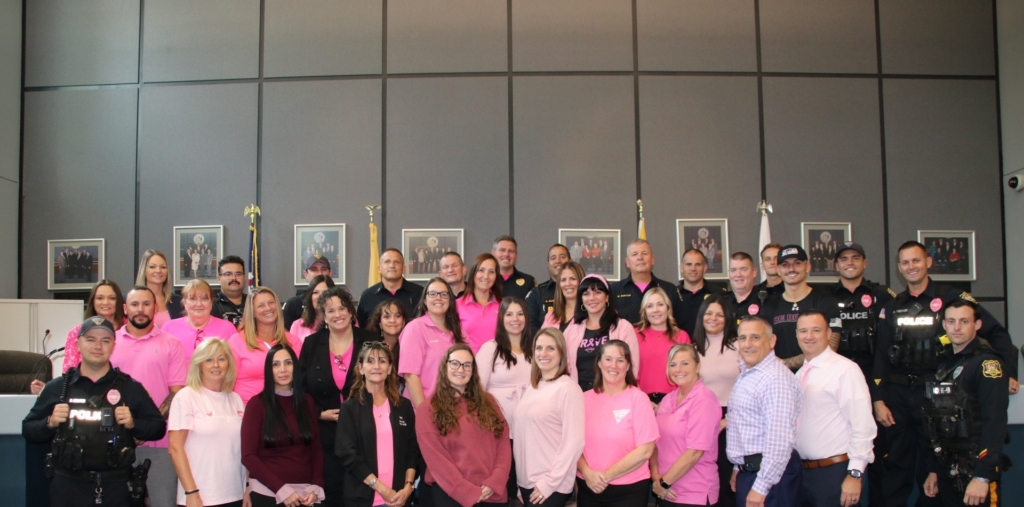 Monroe Township employees and the the police department together wore pink recently to honor the fighters, celebrate the survivors, and remember those lost to breast cancer during October’s Breast Cancer Awareness Month .