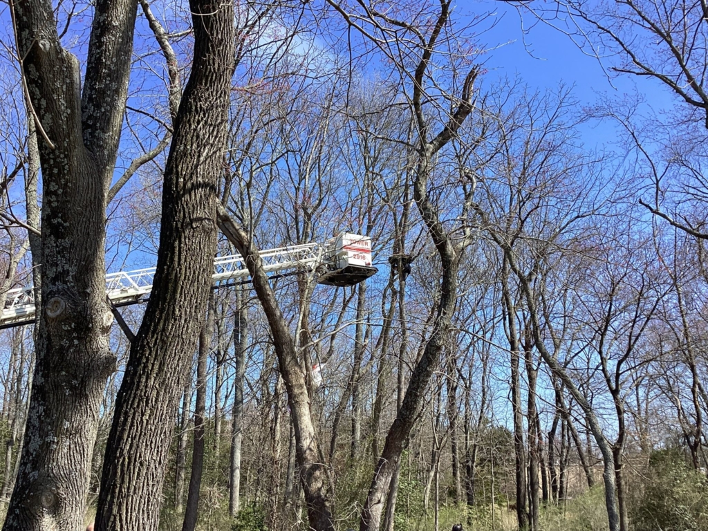 “Crews quickly and safely removed the individual from the tree and brought him down to the ground utilizing Tower 29,” said Fire Chief Shane Nelms.